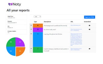 นอกจากนี้ Noty ยังติดตาม URL ของหน้าเว็บที่ทำหมายเหตุหรือจับภาพหน้าจอได้อัตโนมัติเพื่อให้ผู้ใช้สามารถอ้างอิงและเรียกคืนหมายเหตุของพวกเขาได้อย่างง่ายดายในภายหลัง ผู้ใช้ยังสามารถดูผลลัพธ์ของหมายเหตุของพวกเขาในรายงานซึ่งให้ภาพรวมที่ครอบคลุมของความคิดและสังเกตการณ์ที่พวกเขาจับได้อีกด้วย